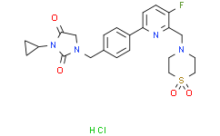 LEI 101 hydrochloride;3-Cyclopropyl-1-(4-(6-((1,1-dioxidothiomorpholino)methyl)-5-fluoropyridin-2-yl)benzyl)imidazolidine-2,4-dione hydrochloride;3-Cyclopropyl-1-[[4-[6-[(1,1-dioxido-4-thiomorpholinyl)methyl]-5-fluoro-2-pyridinyl]phenyl]methyl]-2,4-imidazolidinedione hydrochloride;3-cyclopropyl-1-[[4-[6-[(1,1-dioxo-1,4-thiazinan-4-yl)methyl]-5-fluoropyridin-2-yl]phenyl]methyl]imidazolidine-2,4-dione;hydrochloride |