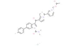 Pyridinium,1-[(acetyloxy)methyl]-3-[(3R)-7-[[1-[(dimethylamino)carbonyl]-6-(4-fluorophenyl)-1H-indol-3-yl]carbonyl]-1H,3H-pyrrolo[1,2-c]thiazol-3-yl]-,chloride (1:1);Pyridinium,1-[(acetyloxy)methyl]-3-[(3R)-7-[[1-[(dimethylamino)carbonyl]-6-(4-fluorophenyl)-1H-indol-3-yl]carbonyl]-1H,3H-pyr;1H,3H-Pyrrolo[1,2-c]thiazole, pyridinium deriv. (9CI);ABT 299;Pyridinium,1-[(acetyloxy)methyl]-3-[(3R)-7-[[1-[(dimethylamino)carbonyl]-6-(4-fluorophenyl)-1H-indol-3-yl]carbonyl]-1H,3H-pyrrolo[1,2-c]thiazol-3-yl]-,chloride (9CI);Pyridinium,1-[(acetyloxy)methyl]-3-[7-[[1-[(dimethylamino)carbonyl]-6-(4-fluorophenyl)-1H-indol-3-yl]carbonyl]-1H,3H-pyrrolo[1,2-c]thiazol-3-yl]-,chloride, (R)-;742QGP819Q;GTPL1849;ABT299;Q27074121;Pyridinium, 1-((acetyloxy)methyl)-3-((3R)-7-((1-((dimethylamino)carbonyl)-6-(4-fluorophenyl)-1H-indol-3-yl)carbonyl)-1H,3H-pyrrolo(1,2-C)thiazol-3-yl)-, chloride (1:1);[3-[(3R)-7-[1-(dimethylcarbamoyl)-6-(4-fluorophenyl)indole-3-carbonyl]-1,3-dihydropyrrolo[1,2-c][1,3]thiazol-3-yl]pyridin-1-ium-1-yl]methyl acetate chloride;Abt-299 |